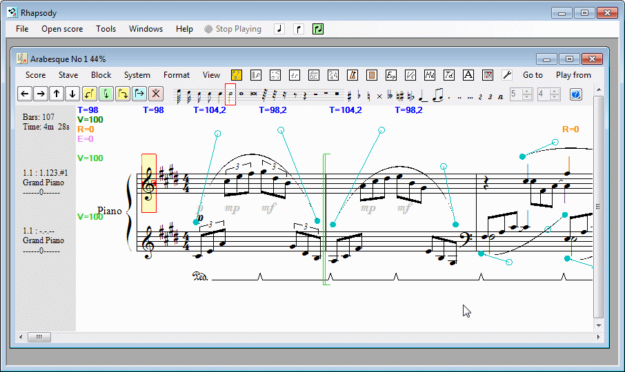 (An alternative way to load a score is to drag it onto the main VBR window. You can also start VBR and load an existing score in one go by simply double-clicking on the score.)