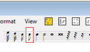 First we need to enter a couple of quavers. Click on the quaver in the Notes and Rests panel above the score. Note that the white box shows which symbol is currently selected like this: