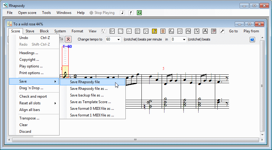 Saving a score