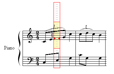 Notice how, when a crotchet and a quaver share the same line on the stave, VBR automatically displaces the notes to make them more readable.