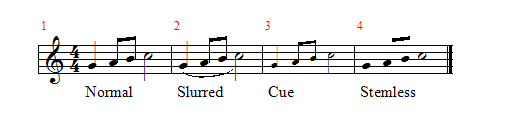 In addition to the style of individual note heads, you can alter the style of a group of notes in a number of ways.