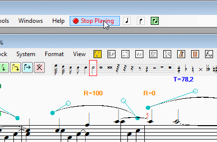 Nice as it is, you will probably want to stop playing the score at some time. To do this, notice that the 'Stop playing' item on the main menu bar is now flashing.